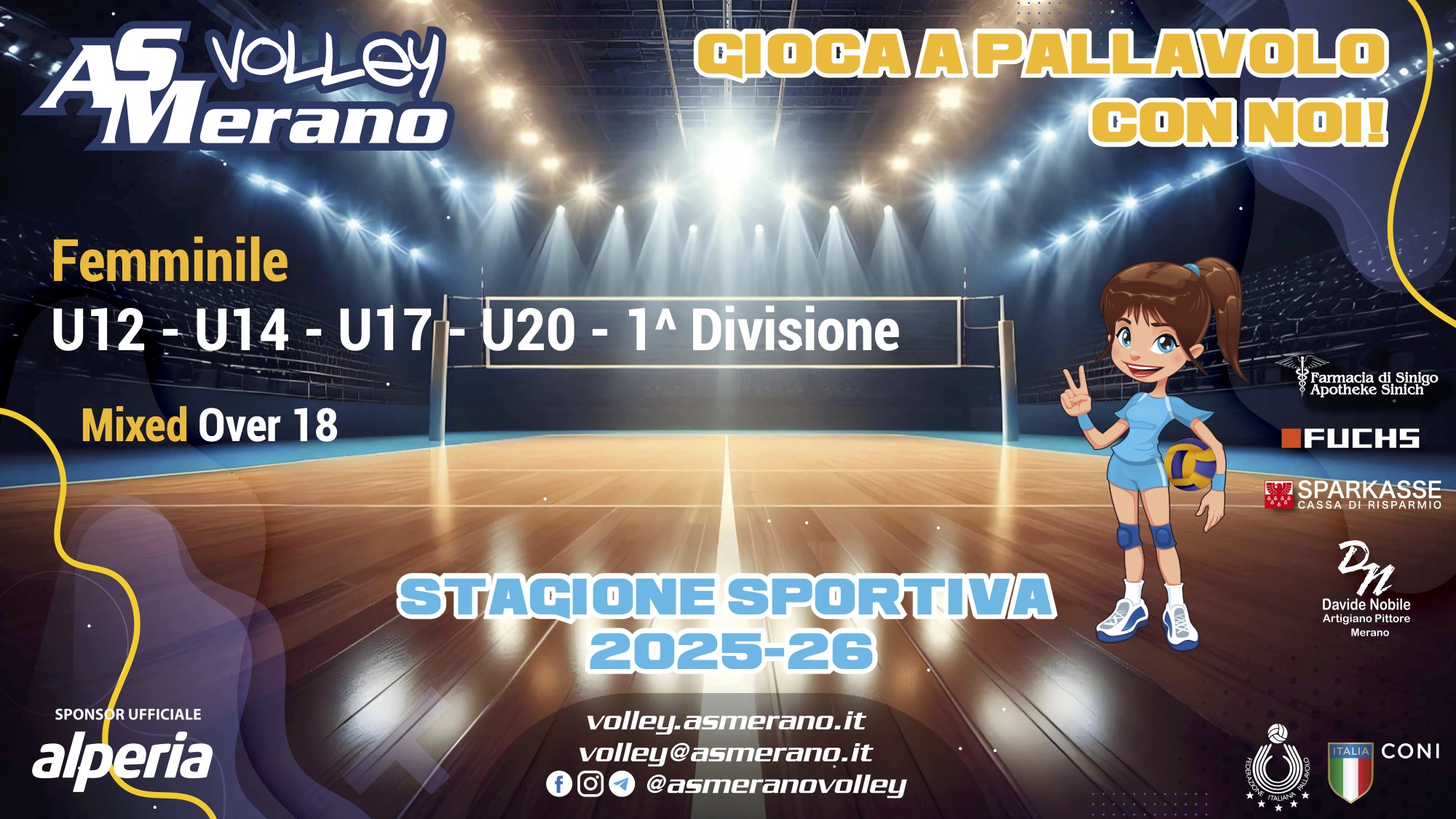 Se ami la pallavolo o vuoi avvicinarti a questo sport fatto di energia, gioco di squadra e divertimento, questo è il momento giusto per entrare a far parte della famiglia A.S. Merano Volley.